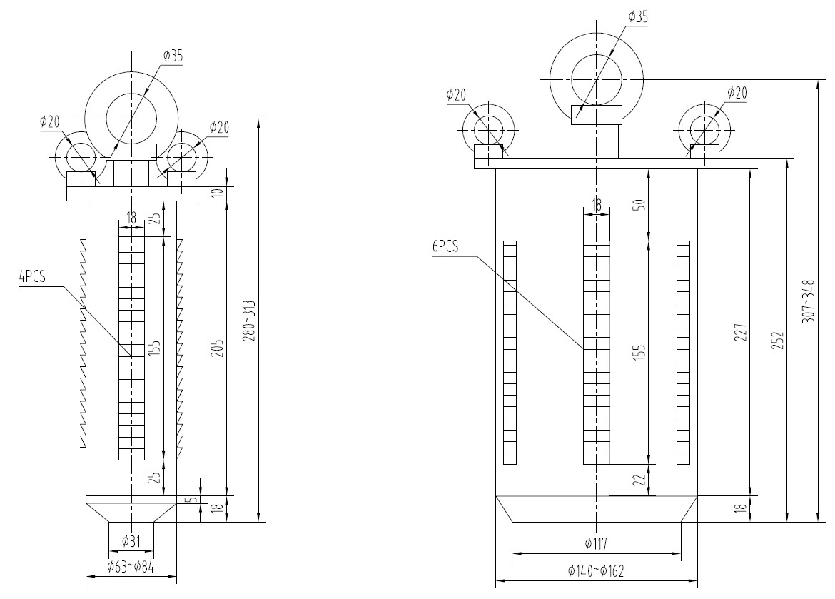 The mechanical lifting chuck is used for all kinds of industries, This chuck is suitable for vertical lifting, loading and unloading of paper core rolls such as tape master rolls, film rolls, paper rolls, etc.